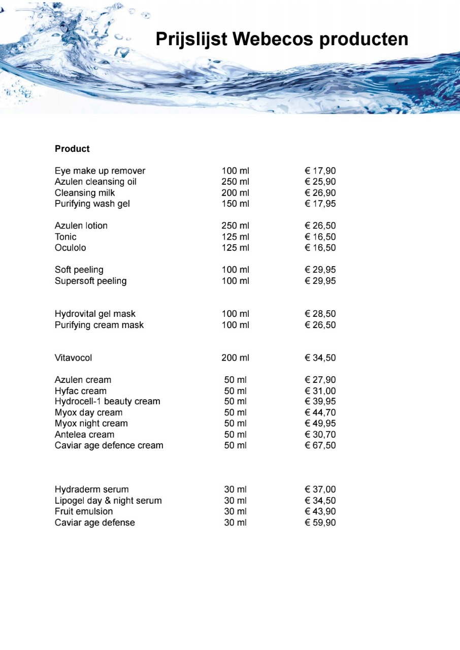 Producten Prijslijst Webecos